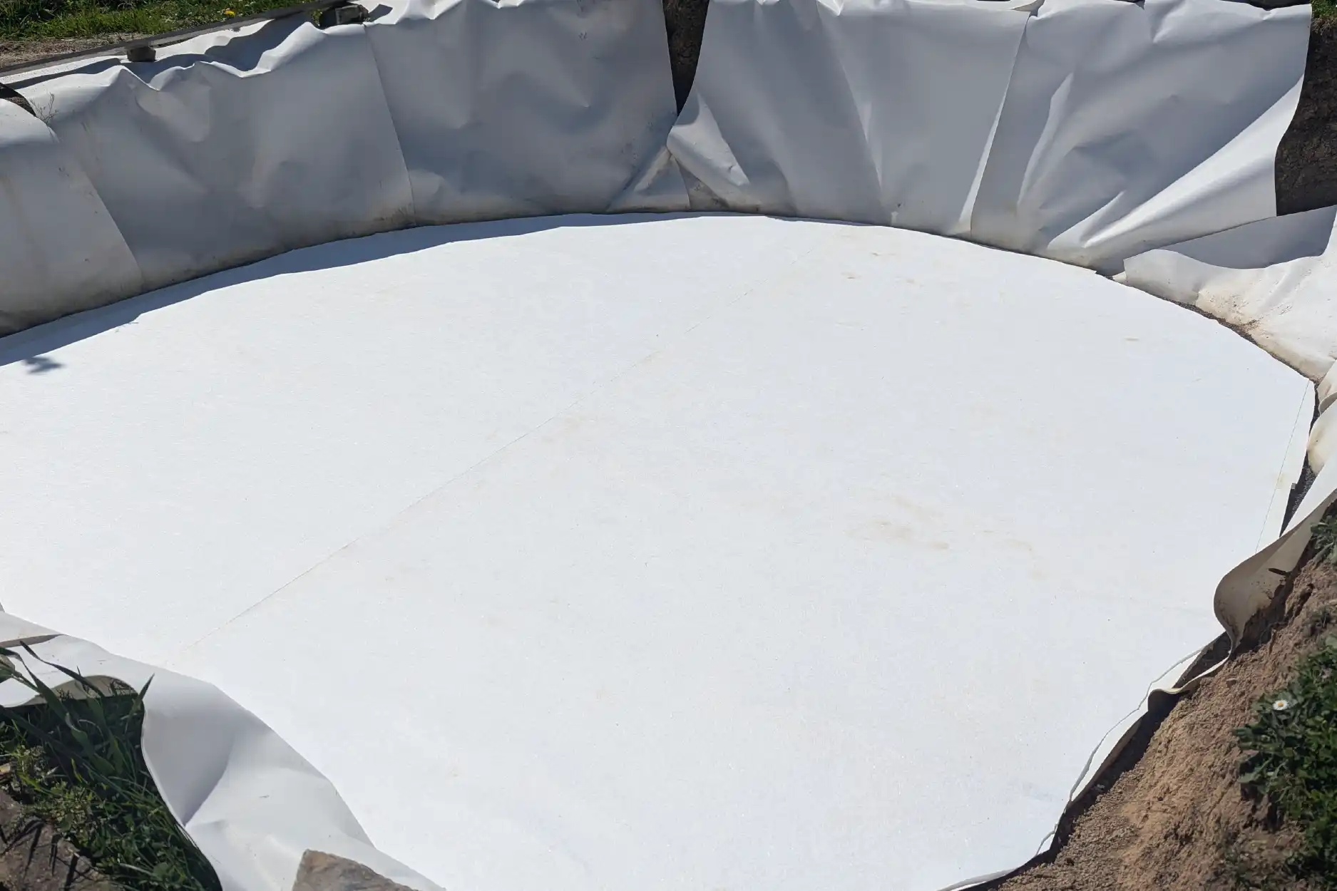 Ich freute mich schon auf die ersten 3 cm Wasser, um die Folie auszurichten. Inzwischen ist der Pool fertig – nur die Fläche außenherum muss noch gemacht werden.