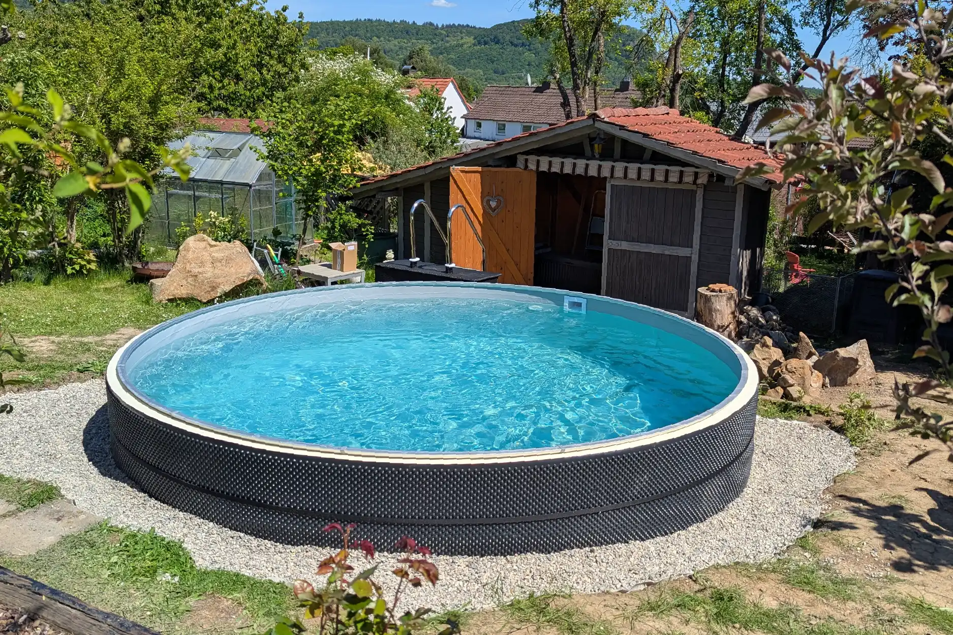 Mittlerweile haben wir die Wasserqualität und den zeitlichen Einsatz der Pumpe im Griff und genießen unseren tollen Pool, wenn das Wetter passt.