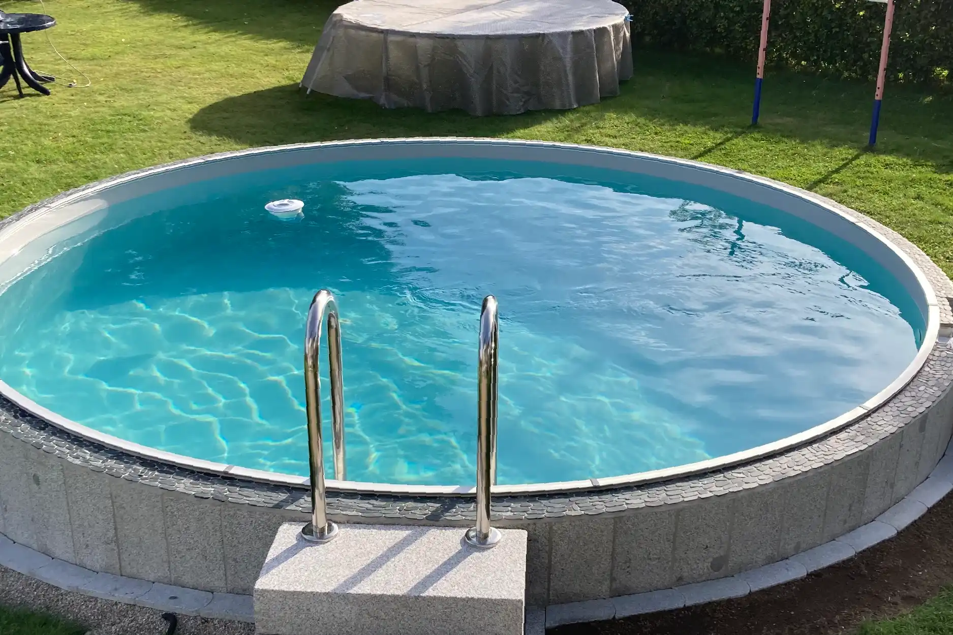 Unser Rundpoolprojekt ist mittlerweile abgeschlossen, wobei wir noch unsere Terrasse erneuern, die den Pool dann integriert.