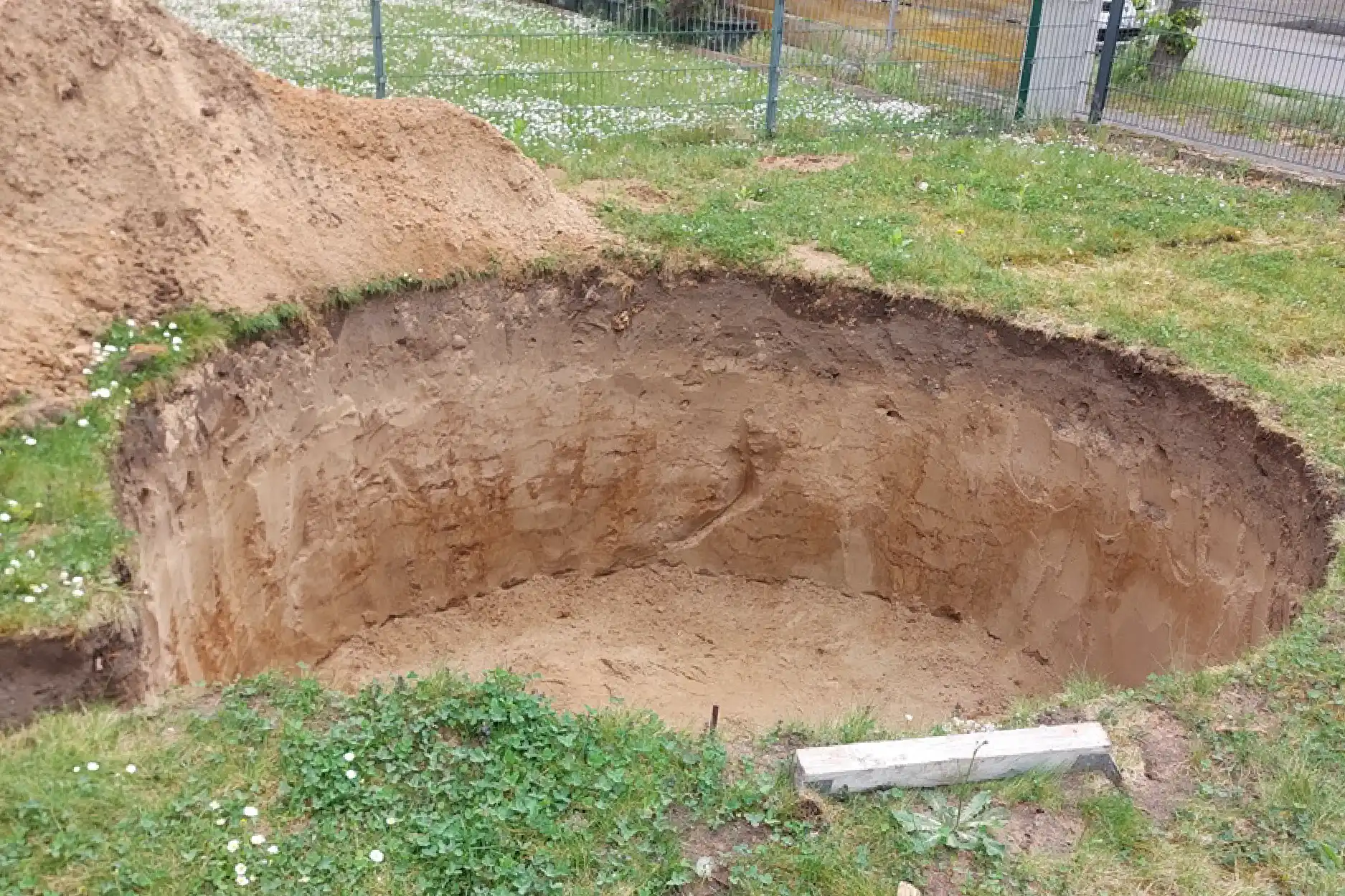 - weil wir bereits ein rundes Loch vom vorherigen Pool hatten,